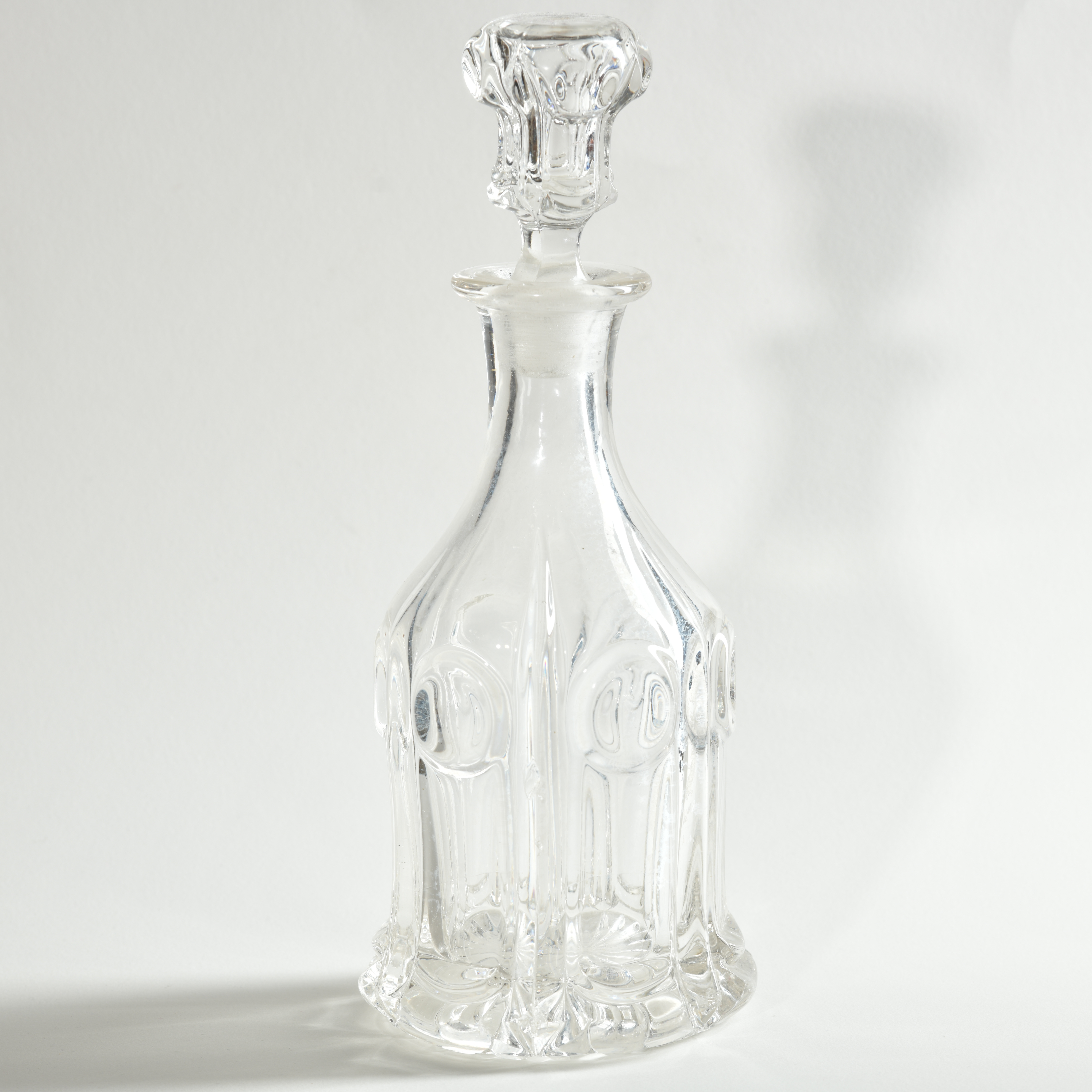 This decanter features the charming inclusions and flaws associated with handmade glass pieces. Minor chips associated with at least a century's use present.
