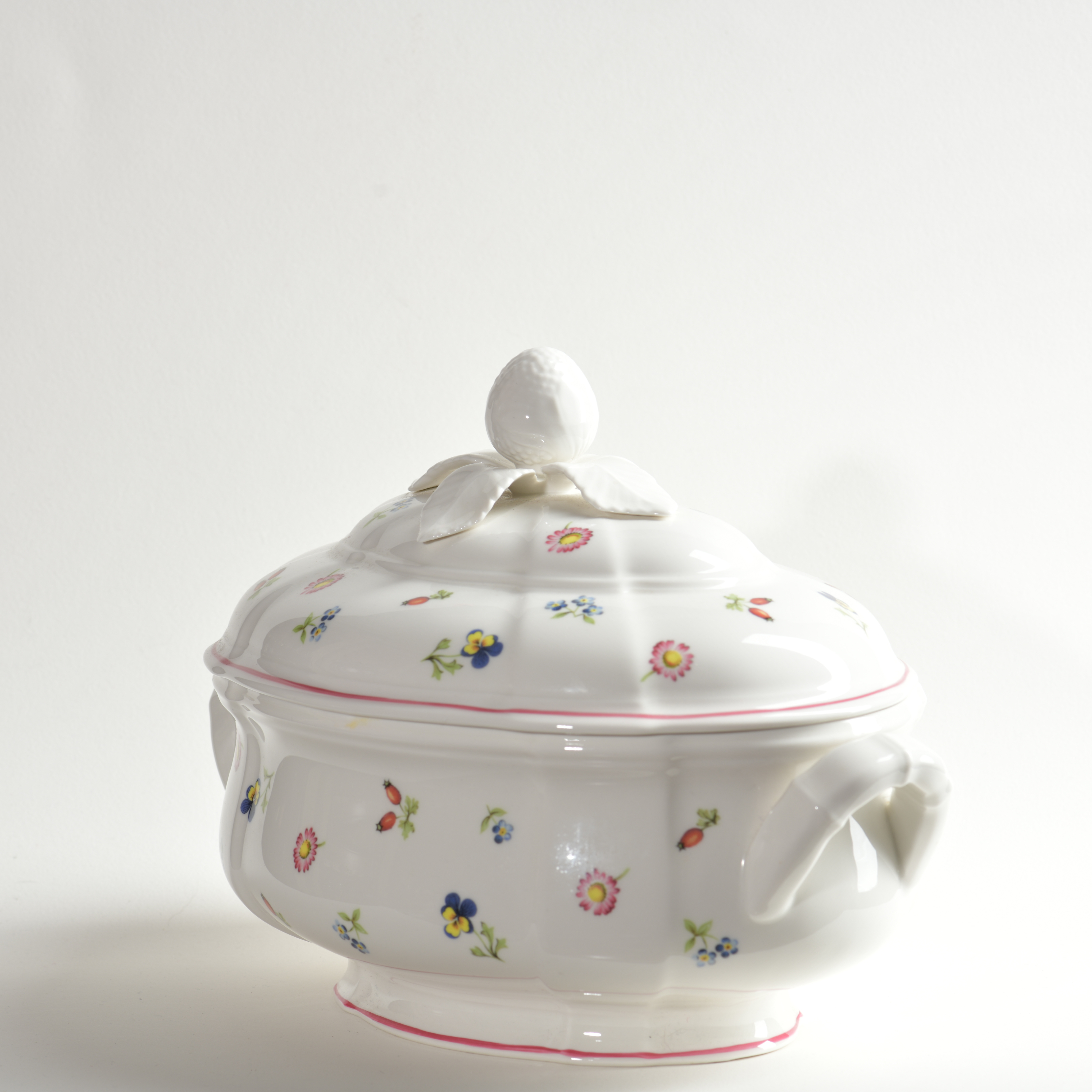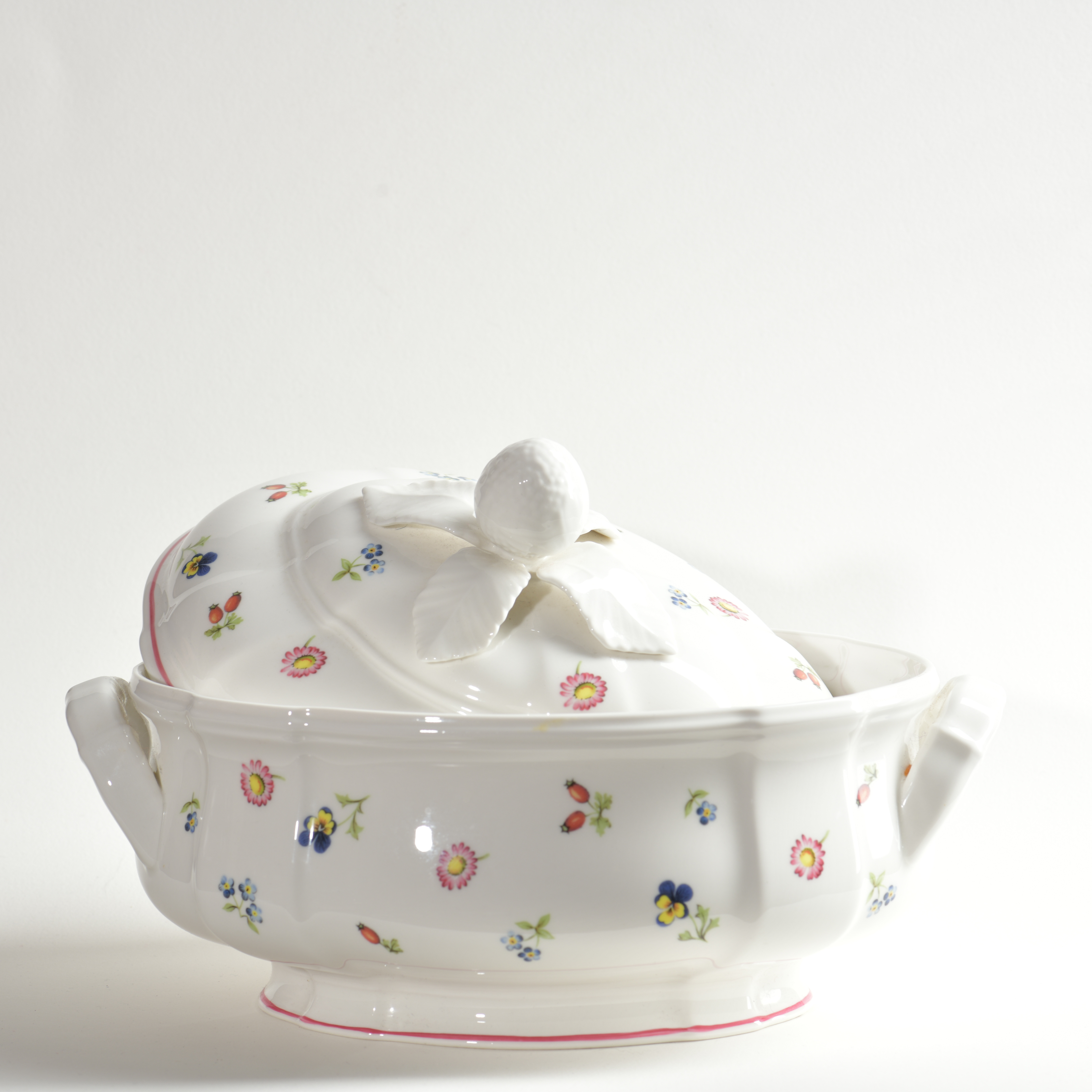 A very pretty dinner set by Villeroy & Boch which was introduced in 1983. This is a stunning tureen with a very sturdy floral handle.